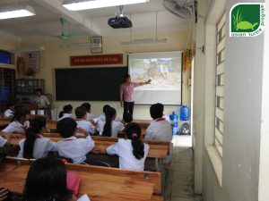 During the school program, Nguyen Tai Thang of the ATP also made a presentation on illegal turtle trade highlighting major threats to wild turtle population of Vietnam. Photo by Nguyen Van Trong – ATP/IMC.