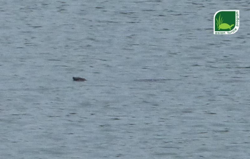 The ATP/IMC has been collecting samples from a number of lakes, including Dong Mo Lake where the only known wild Swinhoe’s Softshell Turtle lives, but eDNA samples have been inconclusive. It seems that dilution factors in large water bodies, coupled with possibly only one animal, has made the process challenging. But at the end of 2016 the ATP/IMC had news of a large softshell turtle being seen in Xuan Khanh Lake, Son Tay district, not far from Hanoi and Dong Mo Lake. Xuan Khanh Lake had come to our attention in 2012 when a photograph emerged of what was reported to be a large turtle but which was not clear enough to confirm as an animal. Intensive observation at this time did not find anything at the lake. With the new information in 2016 the ATP/IMC decided to make intensive observations through 2017, with thousands of hours spent by the team watching the lake which resulted in a number of sightings, and in May 2017 a photograph was eventually taken by Nguyen Van Trong, a former fisherman who has worked for conservation since 2007 for the ATP/IMC. The photograph is clearly a large softshell turtle, similar in general appearance to a Swinhoe’s Softshell Turtle, but again was not enough to confirm the species. We decided it was time to intensify our collection of eDNA samples for processing at the Washington State University laboratory. A clear positive result was given, with the trace DNA from the water samples matching current samples for the species, indicating that the animal in the new lake is also a Swinhoe’s Softshell Turtle. Through this eDNA method we now have additional evidence indicating that the unclear photograph of the turtle in the lake is in fact another Rafetus swinhoei, bringing the globally known population for this species to four individuals.
