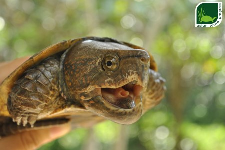 The Big-Headed Turtle (Platysternon megacephalum) is an endangered turtle species distributed in Northern and Central Vietnam and the neighbouring countries, Laos, Thailand, China, Cambodia. With a large head and elongated beak-like jaw, this species cannot retract its head into its shell. Instead, it is able to use these powerful jaws to defend itself from predators.