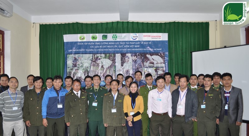 From the 16th to 17th of December 2015, a special enforcement-training course was held in Thanh Hoa province, northern Vietnam, for 25 wildlife protection agency staffs, including Forest Protection Department (FPD), Environmental Police and Border Guards. The two-day course on ‘Law enforcement training to strengthen protection of rare and endangered reptiles in Vietnam’ was designed to focus on priorities tortoise and freshwater turtle species occurring within the province, as well as identifying priority sites for the conservation of turtles in the province.  The training was organized by the Asian Turtle Program (ATP) of Indo-Myanmar Conservation (IMC) and the Turtle Conservation Centre (TCC) of Cuc Phuong National Park.