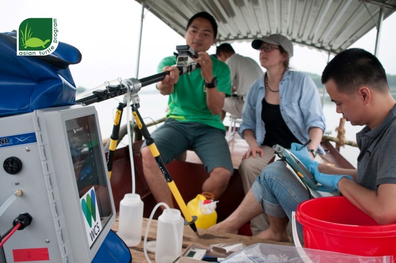 eDNA để tìm kiếm cá thể loài rùa Hoàn Kiếm (Rafetus swinhoei). Ảnh: WCS Việt Nam